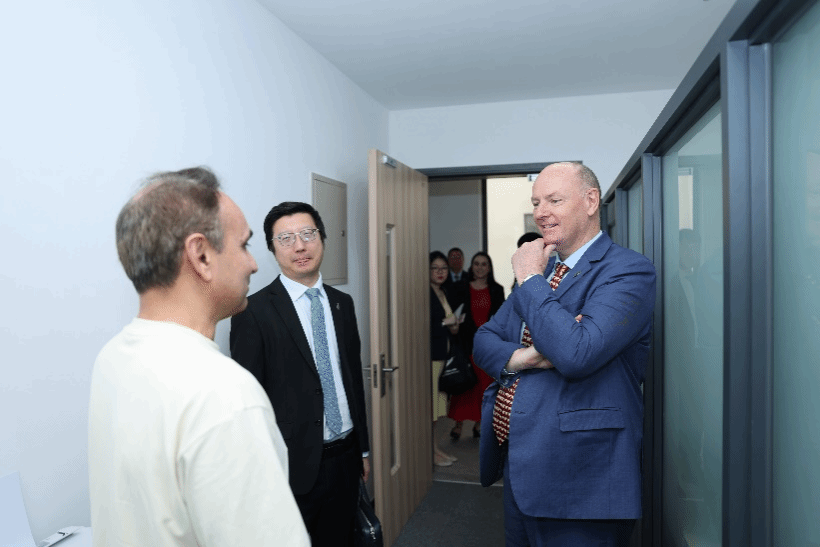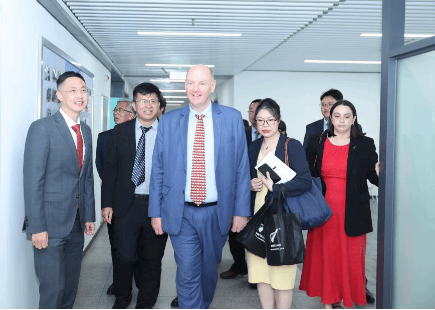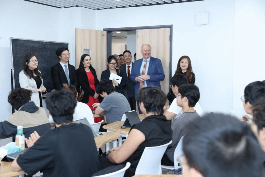 在参观过程中,大使一行走进310教室,与正在上课的师生亲切互动,现场向同学们发出诚挚邀请,欢迎我院学子赴新西兰开展深造学习、学术交流与科研合作,勉励青年学子拓宽国际视野,积极参与跨境创新实践。